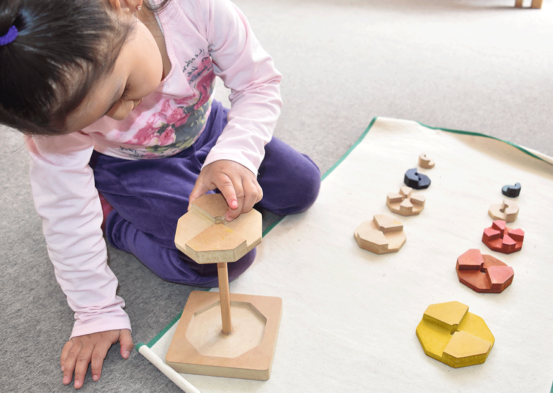 El ambiente está preparado con material didáctico especializado; donde la inteligencia y la parte psíquica del niño se desarrollará a través de un trabajo libre.